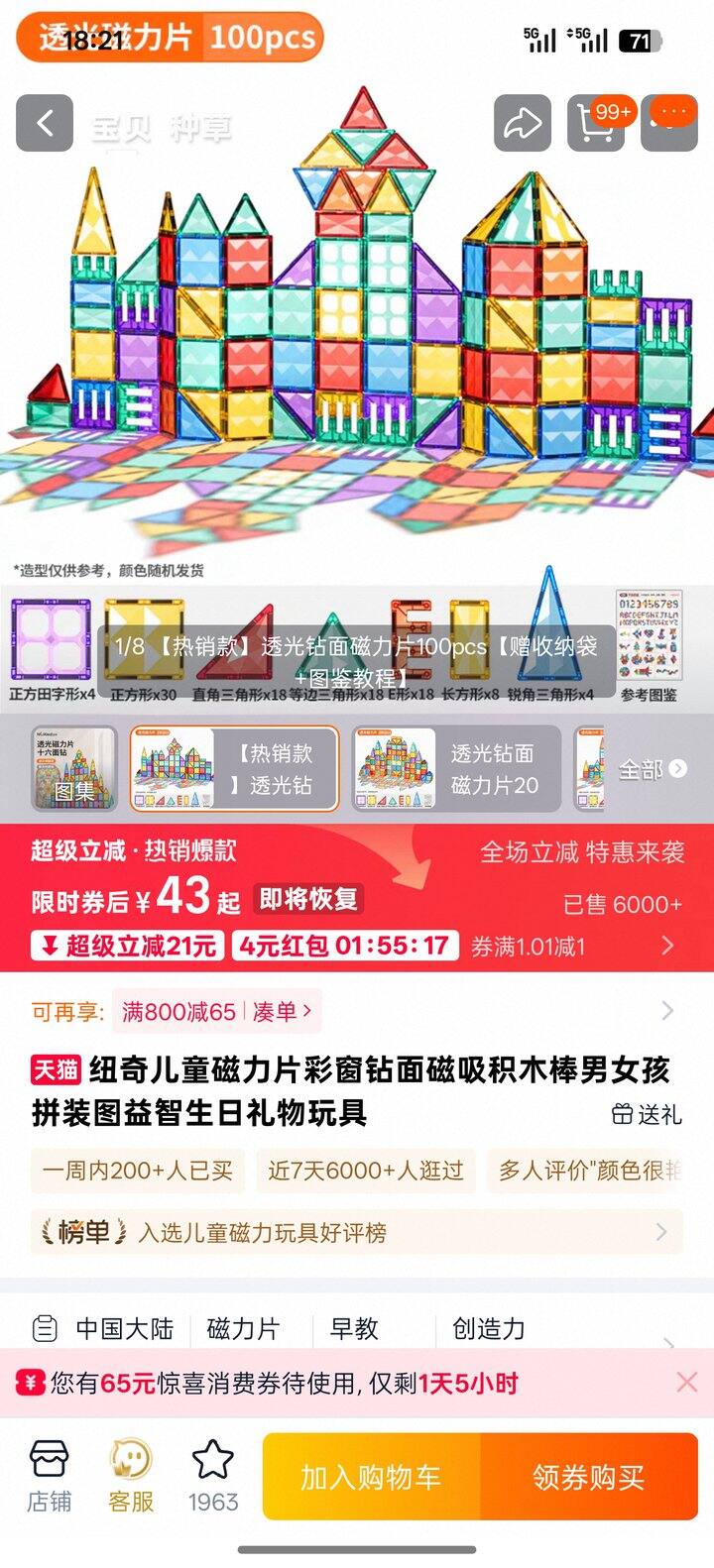 跟着博主买的,应该是路口博主,质量很好,小朋友玩儿一个小时没问题[耶]双十一买成56.26