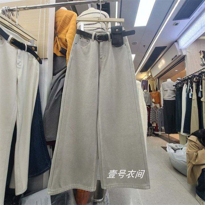 2025冬季新款牛仔裤显瘦高腰窄版直筒裤加绒保暖女裤子配腰带