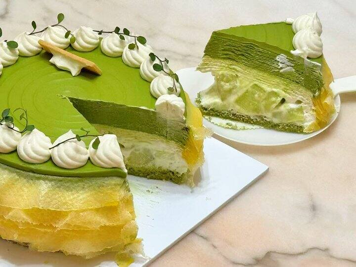 抹茶的苦味和蜜瓜的甜味中和在一起