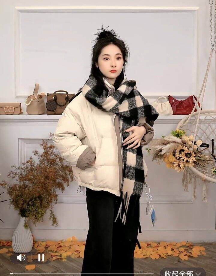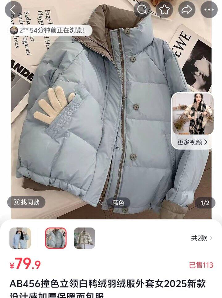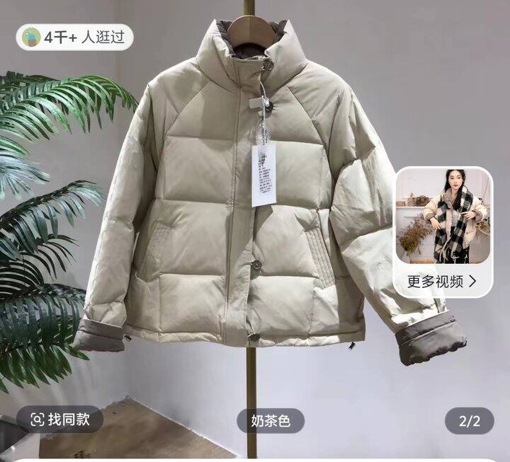 我买的蓝色。。有直播讲解可以看。说是羽绒,不太懂。但是穿上很好看。。实物比拍的蓝色更好看。店铺名字在下图,是抖音店铺。链接我发在评论里了。不知道能不能打开