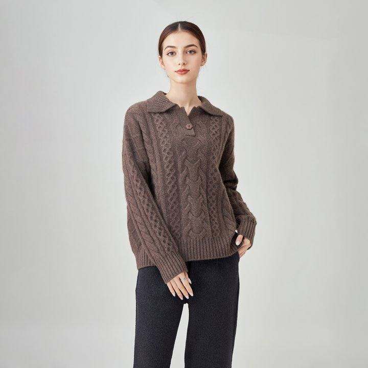 100山羊绒毛衣女纯色V领长袖麻花羊绒衫康赛妮加厚翻领套头衫
