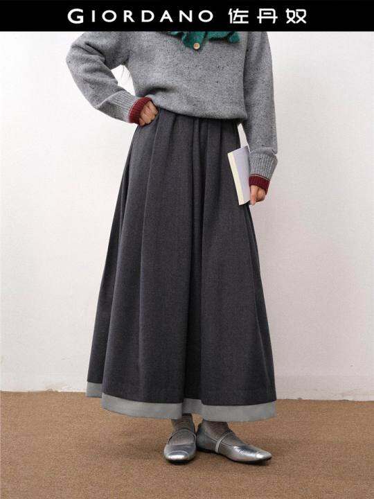 设计师款佐丹奴格雷系百褶裙女秋冬新款下摆拼接半身长裙18465536