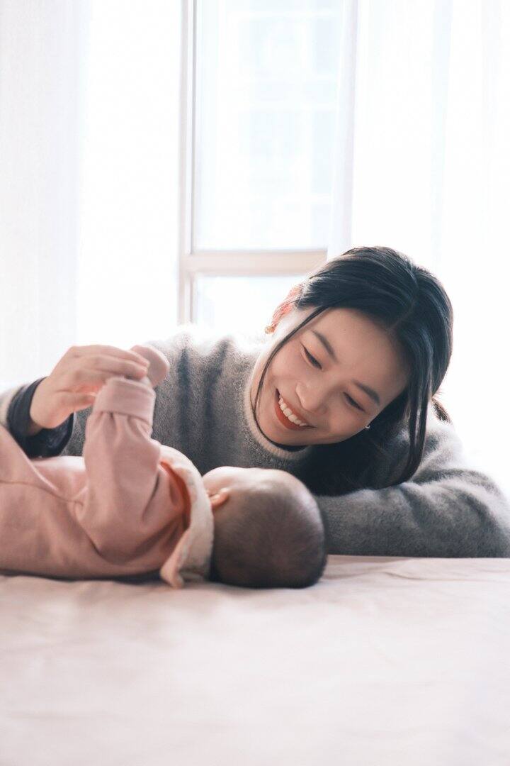 不知道要说什么的时候,我就开始胡说八道,说这说那,说到在肚子里乖乖的时候,每次产检都很配合,她好激动啊。