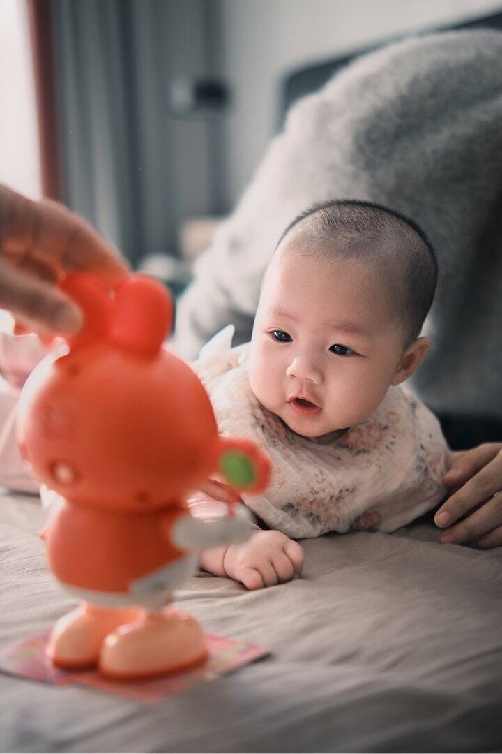没想到这个小孩长得这么可爱,圆溜溜的眼睛,不知道是不是亲妈滤镜,每天都在感叹,她怎么能这么会长啊。