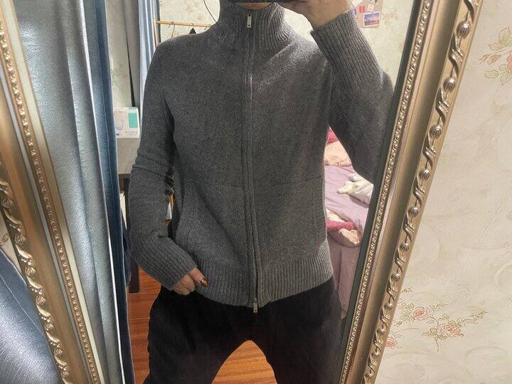 90羊绒10羊毛-双拉链灰色高领毛衣,188元,称了下大概350g