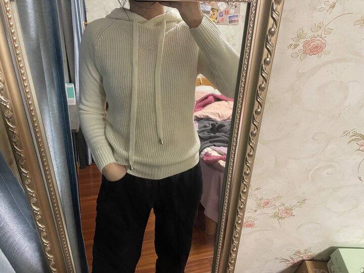 30羊绒70羊毛-白色连帽毛衣,100元,称了下大概390g