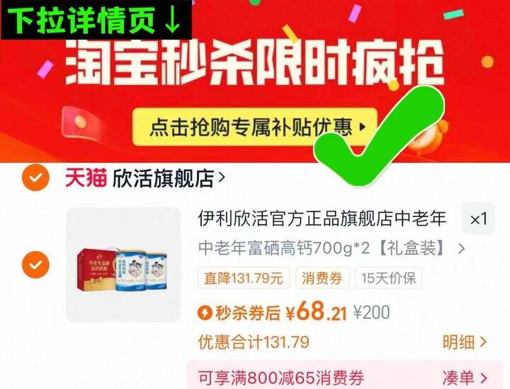 伊利中老年奶粉𝟕𝟎𝟎𝐠💰34,富硒高钙好!