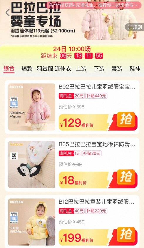 巴拉巴拉秋冬大专场来啦!大家可以到专场瞅瞅,限时补贴大额礼金🧧还是官旗直拍,带运费险