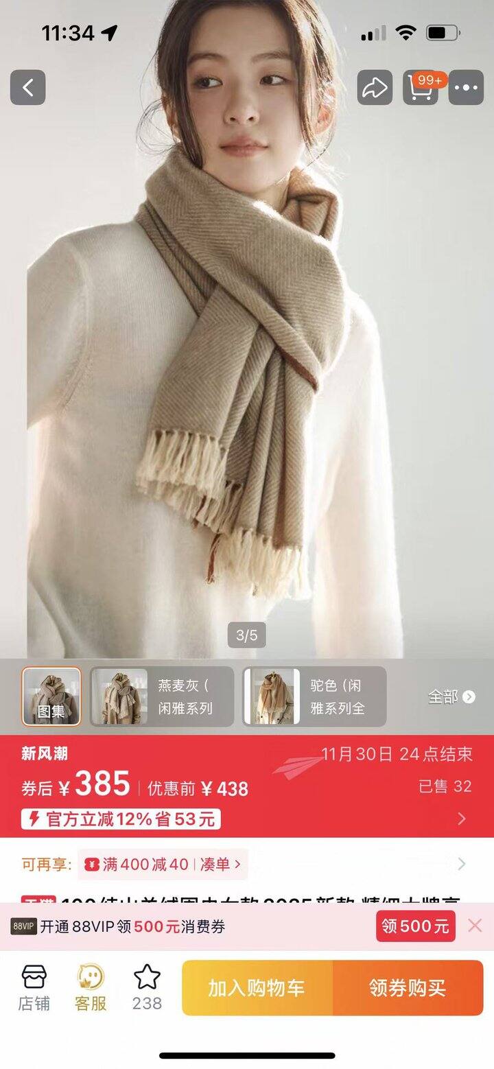 我下了一单,老板也没收我钱……感觉很划算,说是围巾工厂倒闭了,他去抢货……
