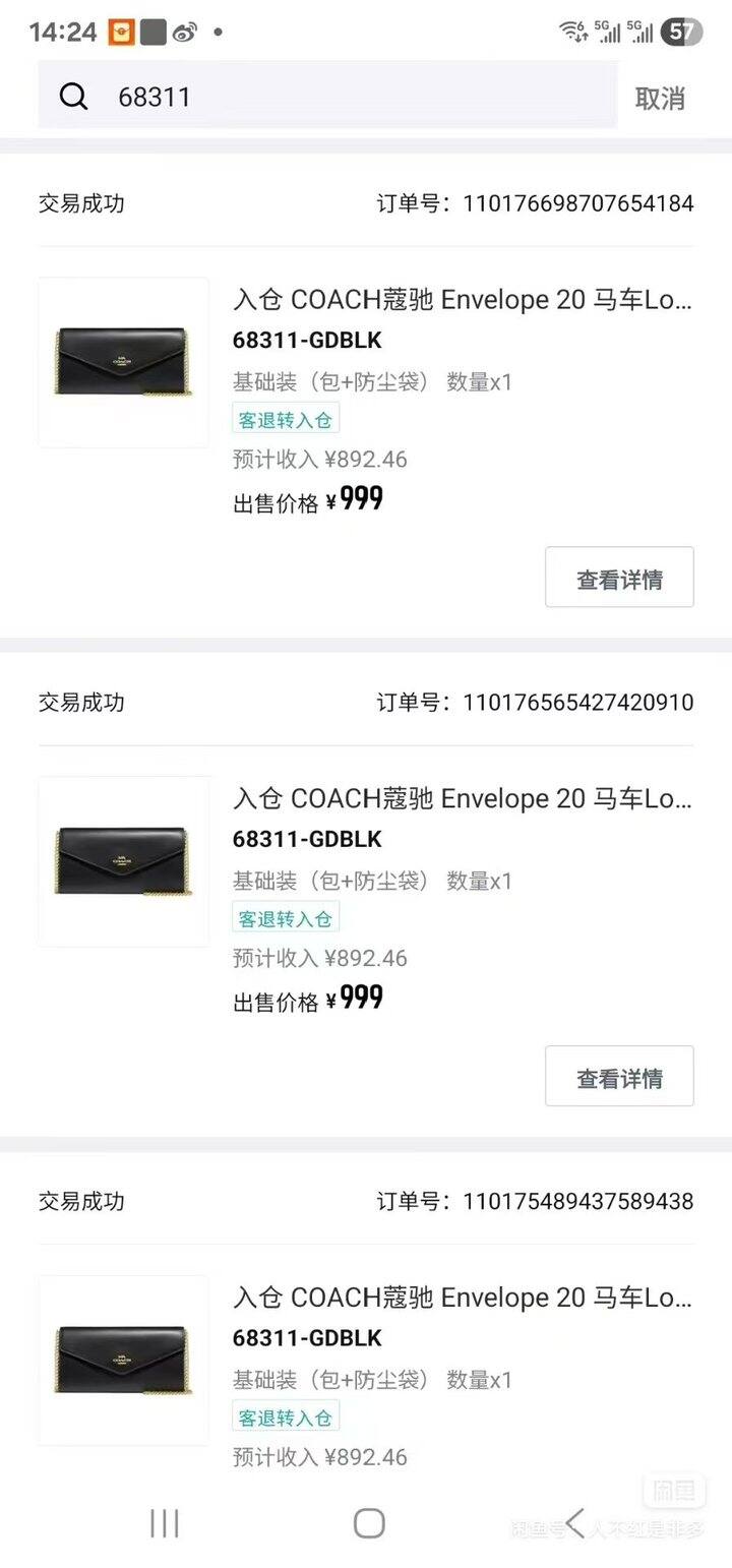coach 斜挎包信封包多个,放手机放卡片都可以,全皮,可以拆卸金属链条,21*11*3.5cm. 得物,95和只二都卖过。剩下的,有些小疤痕之类的小问题,但是绝对超所值,下单之前会视频确认。