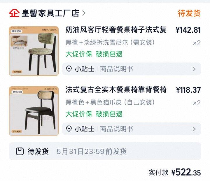 平价餐椅,店家说是实木的,绿色雪尼尔可以和我的沙发呼应一下