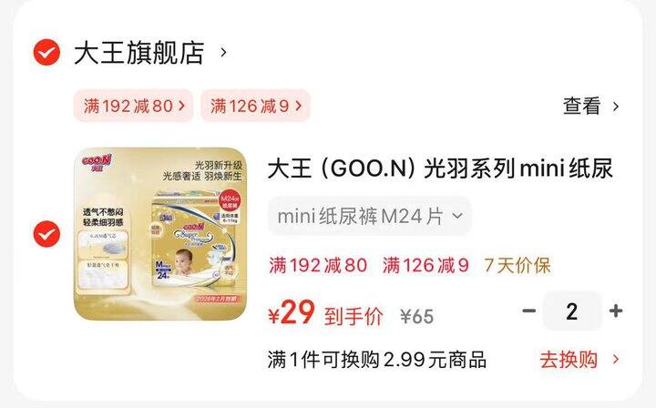 大王光羽系列纸尿裤mini装 M碼拍2💰58 🈴29/包‼