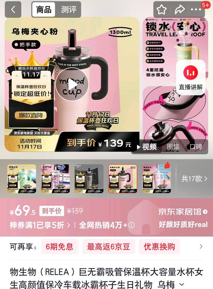 乌梅夹心粉保温杯1.3L