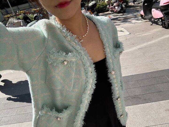 去年线下凑单买的小香风外套,之前颜色咋搭都没到点子上