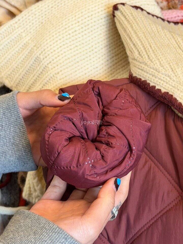 大翻领拼接针织边,菱格绗缝不用担心跑棉