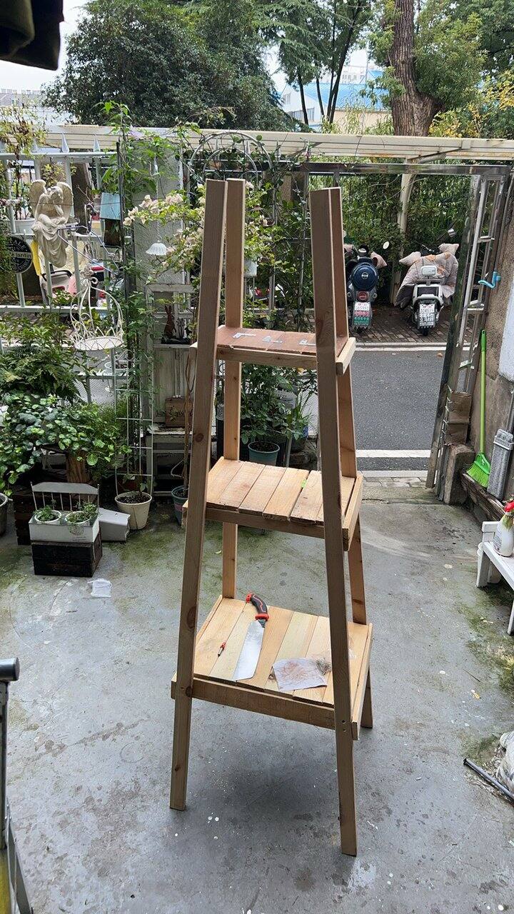 最近又做了个风车花架。是暑假时看到家门口垃圾桶旁人家扔掉的打包架,我把拖回家,拆了。然后和家里剩下的防腐木拼拼凑凑的做的,有点瑕疵,歪了哈哈哈。不影响使用。这应该是我最后一次做木工了,因为小院已经没有多余的地方再做木架了