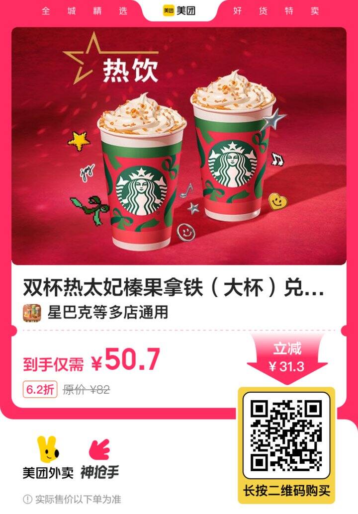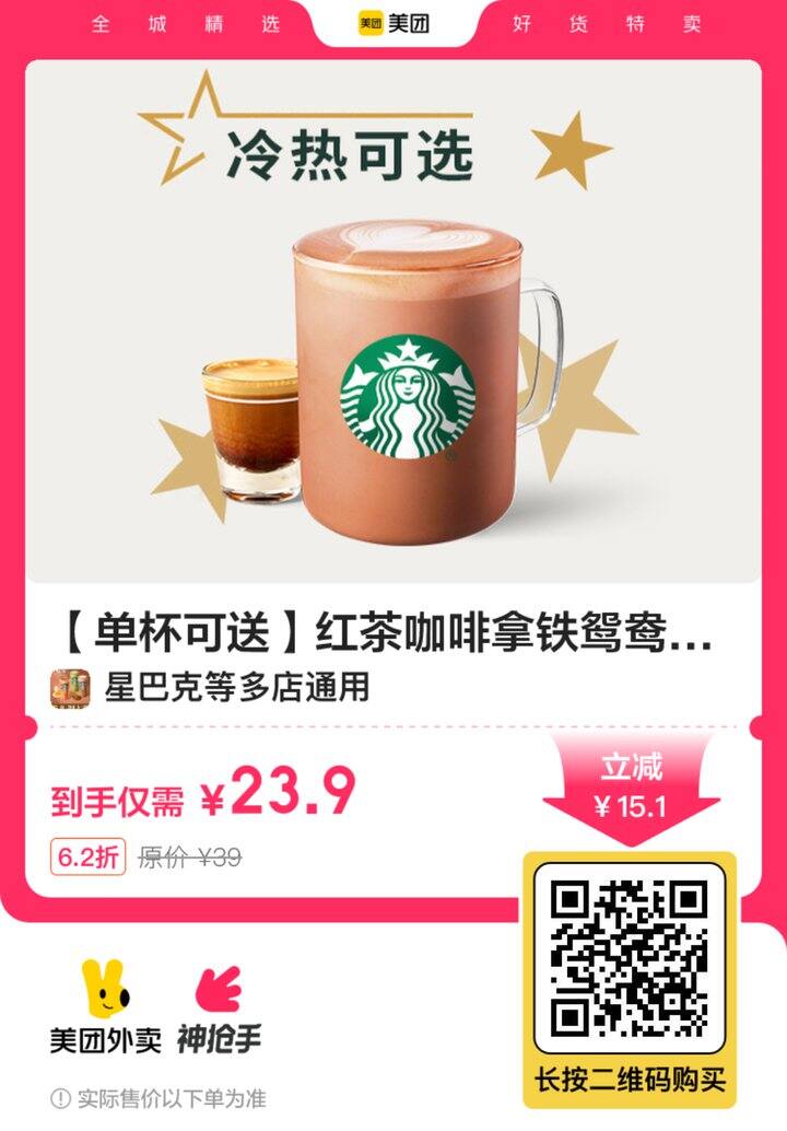 星巴克✖外卖💥今日免配!