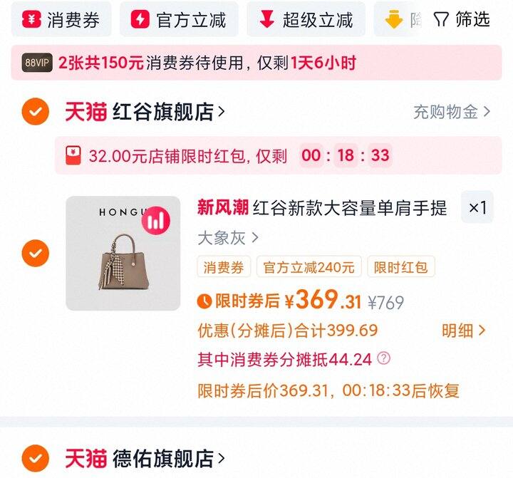 1、【母亲节礼物】红谷包包方格与条纹丝巾https://m.tb.cn/h.SDyA9WG弹30礼金