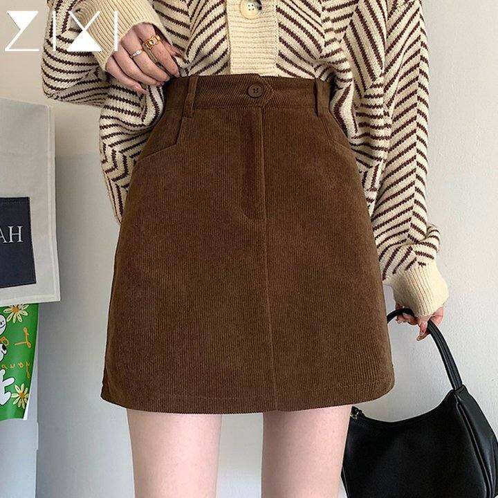 秋冬咖色半身裙女灯芯绒短裙小个子棕色高腰A字包臀春季裙子半裙