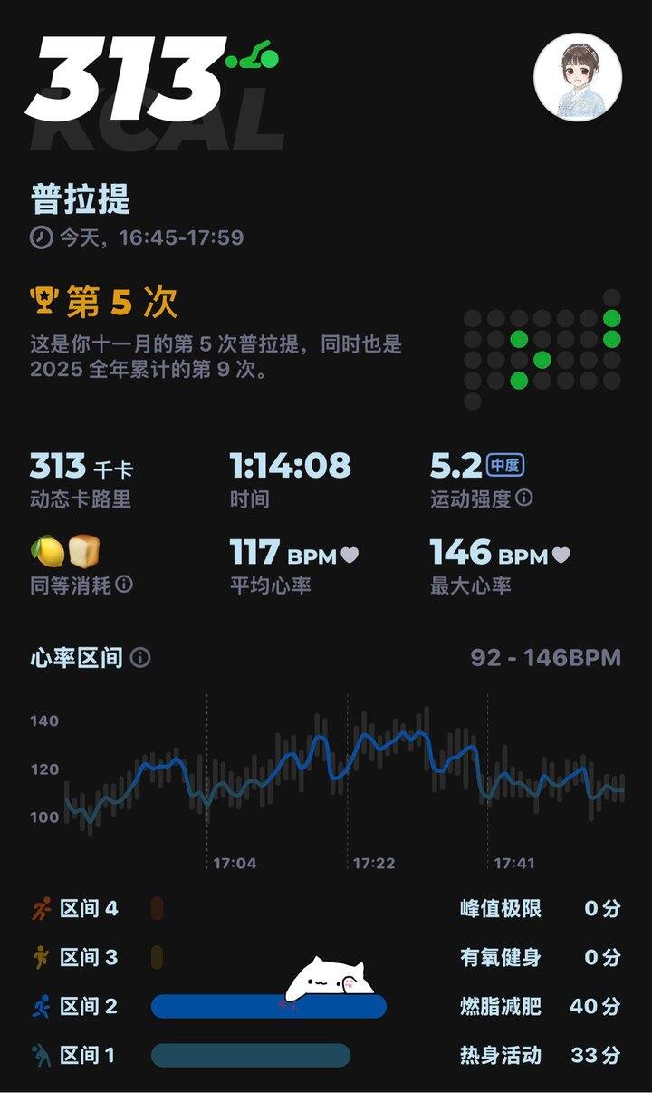 今天去上普拉提课有个姐姐说:“我一想到锻炼就好苦,心里难受,你怎么还能坚持跳操加普拉提的?”