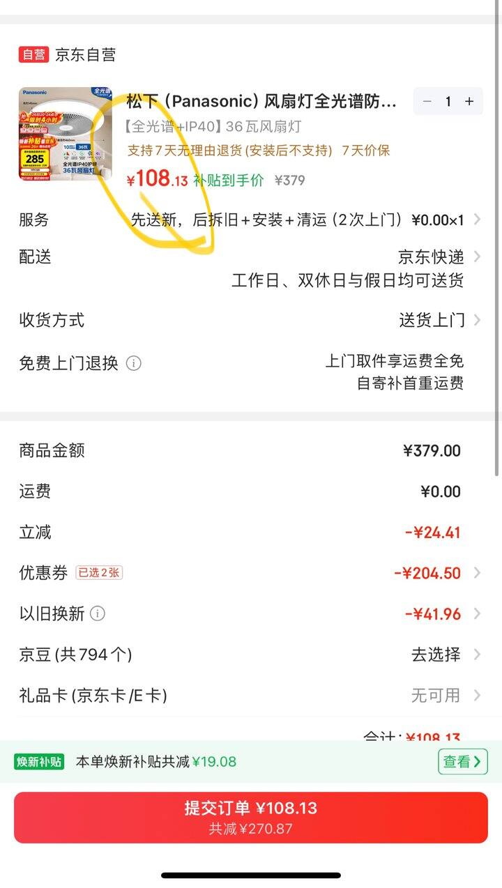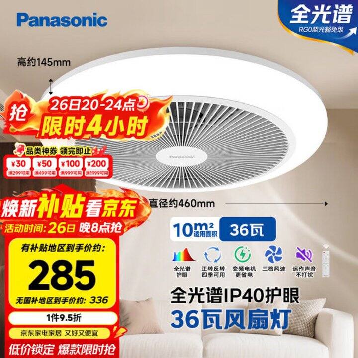 1,松下风扇灯全光谱防眩护眼36瓦LED照明