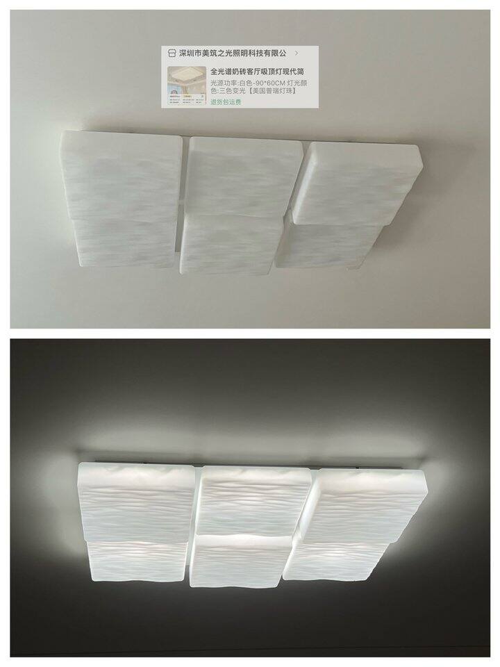 pdd这盏是最后买的一盏主灯,也是最便宜的一盏,质感绝了,金属底座加玻璃灯罩,48厘米三色129元(多多补贴真的很大方),卖家还给免费升级成96W[胖鹿真棒]。家人都说它是所有灯里的No.1,瞬间其他的灯都不香了。