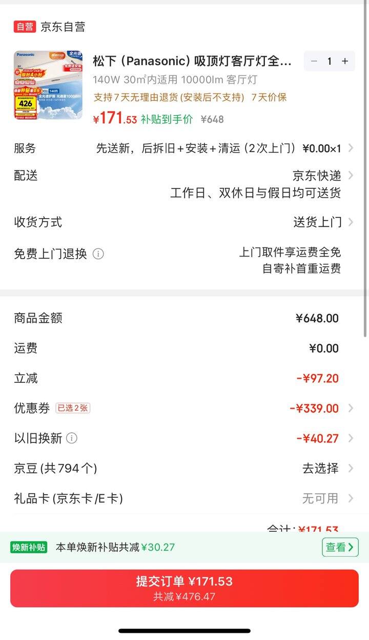松下全光谱高亮度护眼吸顶灯丨171.53