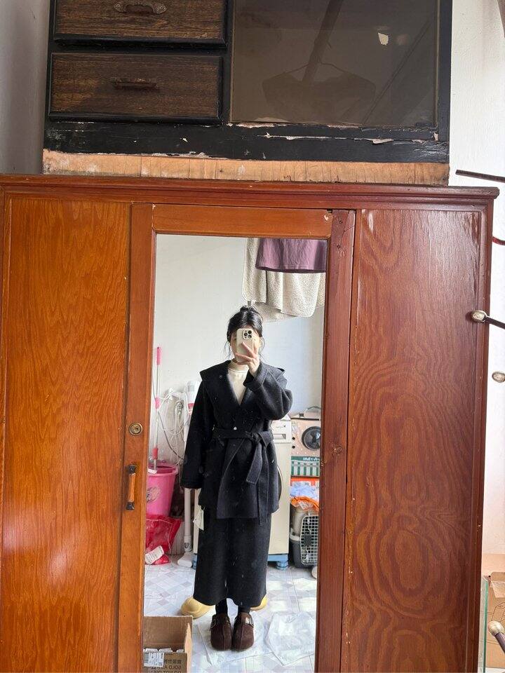 里面毛衣穿的比较厚,腰带系起来超奇怪