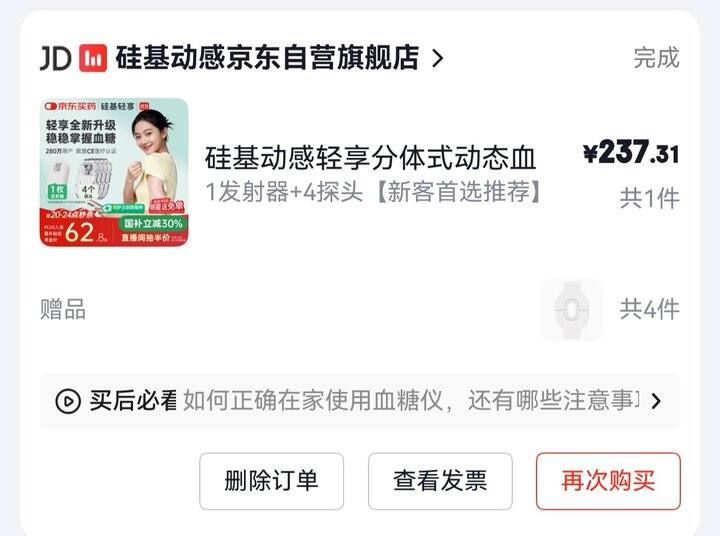 3.给我妈买的血糖仪,买了就推送了更低价就算了,我妈把加固贴弄丢了,没戴加固贴直接废了一个。