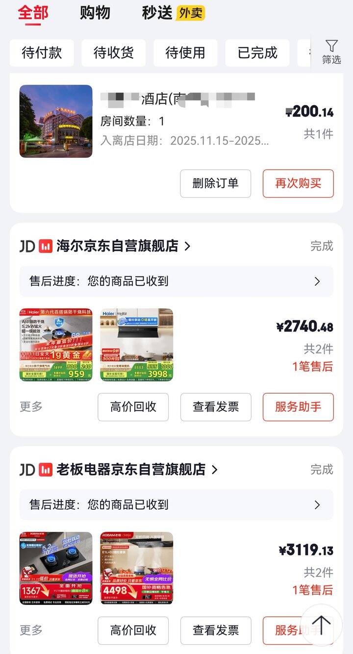 5.抽烟机和灶就是买了这么多[哭笑]3个,退货小哥都认识我了。[鹿呵呵]老板的差价有500多,客服要了订单截图,我还去厚脸皮要了截图,最后说不退差价,气得换货了。