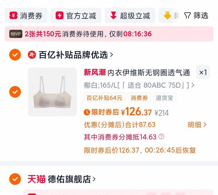 1、【花海】伊维斯内衣女小胸微聚拢软支撑海豚杯无钢圈胸罩蕾丝文https://m.tb.cn/h.SxjeG7b弹16.9礼金