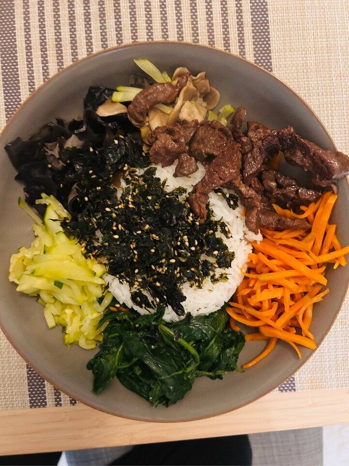 还做了韩式拌饭,真的也超简单,也不会出错,只要把酱汁调好,其他的菜搞熟就很好吃!跟外面吃的一个味道,就差一个热热的砂锅[鹿笑哭]