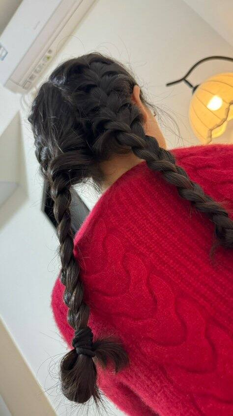 因为懒得第二天早上花七八分钟烫头发了,就扎了俩小辫子,效果好到震惊,出去玩能保持两天多还有卷!