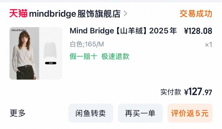 另外一个是双十一跟路口车买的一件薄羊毛衫,材质好的基础款,92%羊毛+7%羊绒,有了娃以后真的不想再穿聚酯纤维的毛衣了!