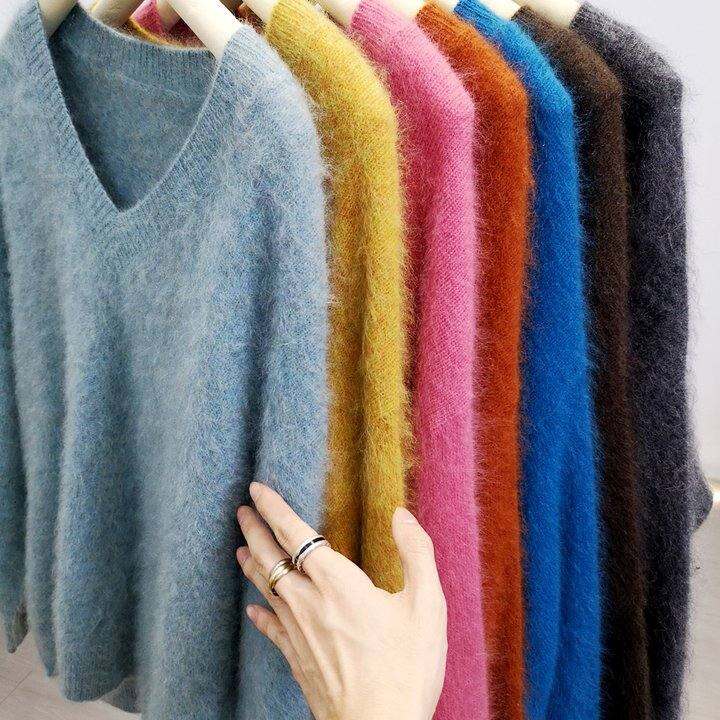 时髦松弛没有之一~全羊毛拉毛V领针织衫秋冬拉绒毛衣 宽松慵懒风