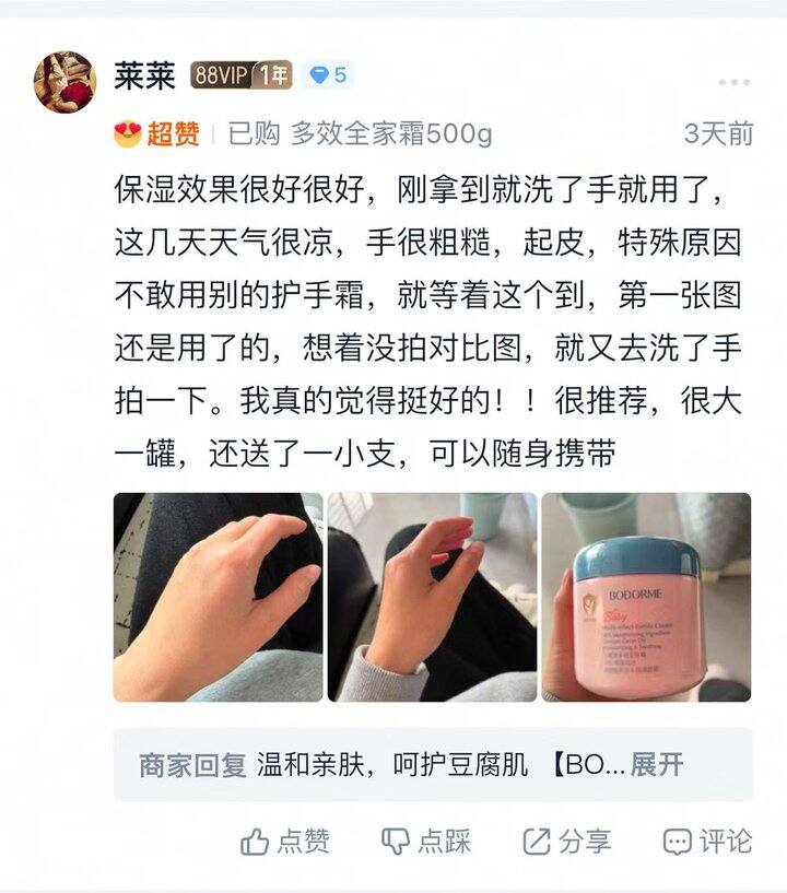 专柜卖119的!够全家人用一个冬天了!姐妹们反馈都说比大白罐好推开好吸收!而且全家都能用!