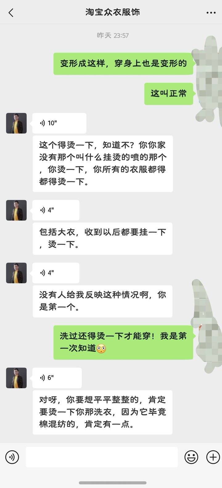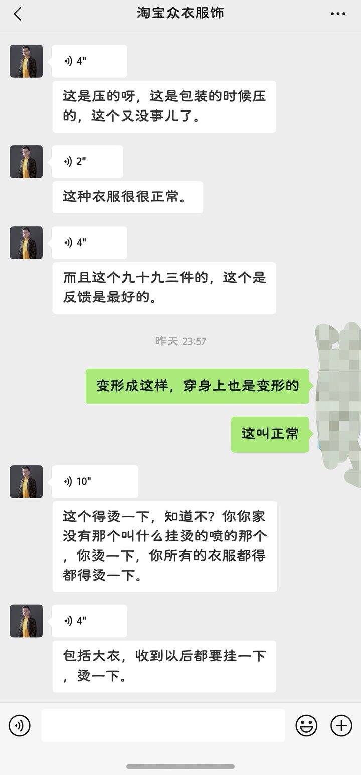 从路口安利的店…从老板微信直接下单99元3件内搭,收到洗后,高领的领子变形,老板说正常,衣服都得熨烫了再穿,不是事儿!