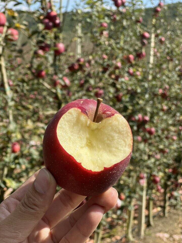 ⭐ 差异化口感体验:果子外皮鲜红亮眼,果肉纯甜无酸、汁水丰富且自带独特香味,糖度显著高于市场普通苹果。