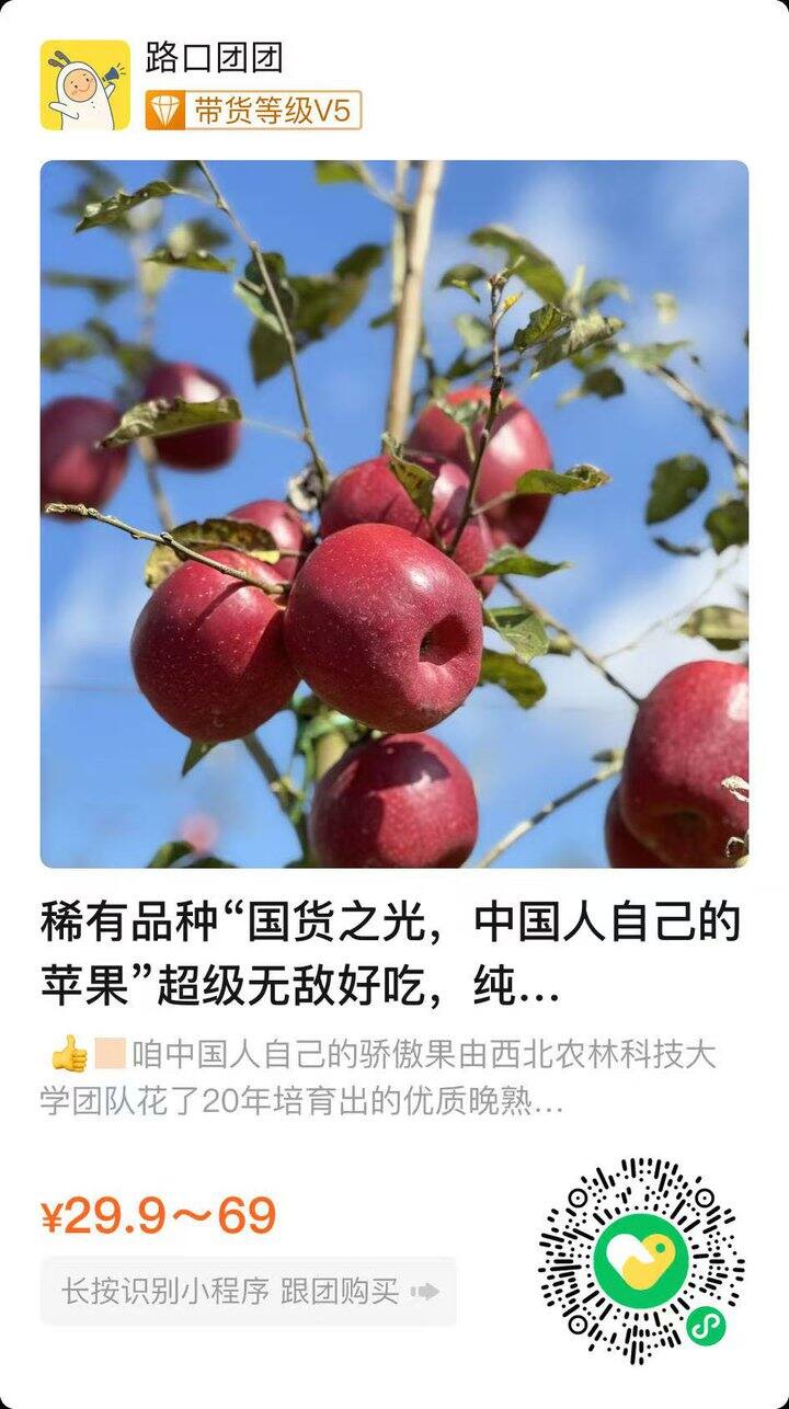 因为开的苹果团太多了,所以之前这款果园找来给活动的时候我是只开团没有在路口推的,但是架不住两个苹果大户用户微信里找团团说这个苹果口感很好,怎么不推,我又厚着脸皮找果园要了试吃活动给大家推荐~