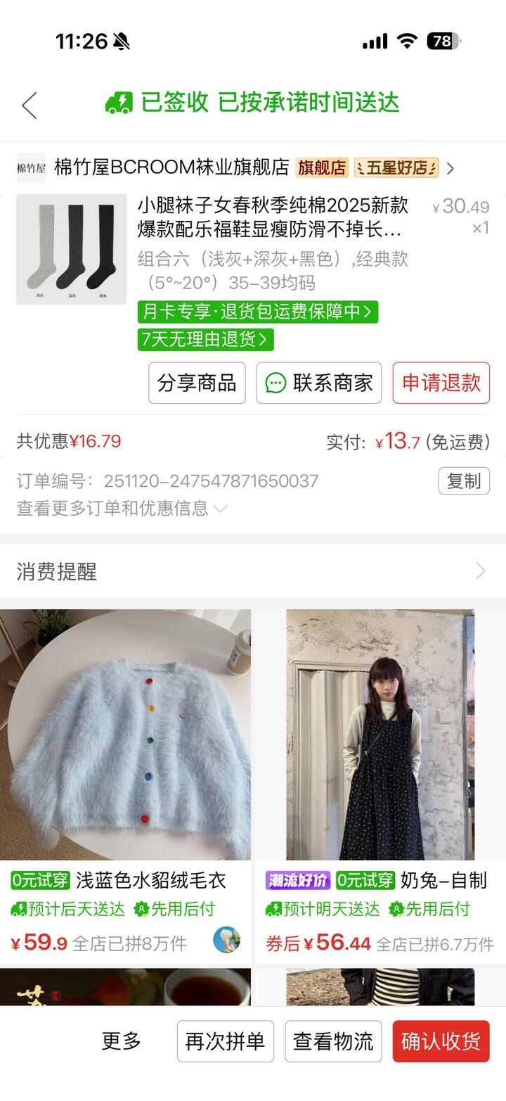 拼多多五折券买的小腿袜,用来穿裙子阔腿裤的时候穿里面很不错,省去了穿裤袜秋裤,办公室坐着小腿不冷了。
