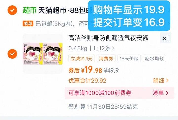 显示19.8,提交订單💰16.9