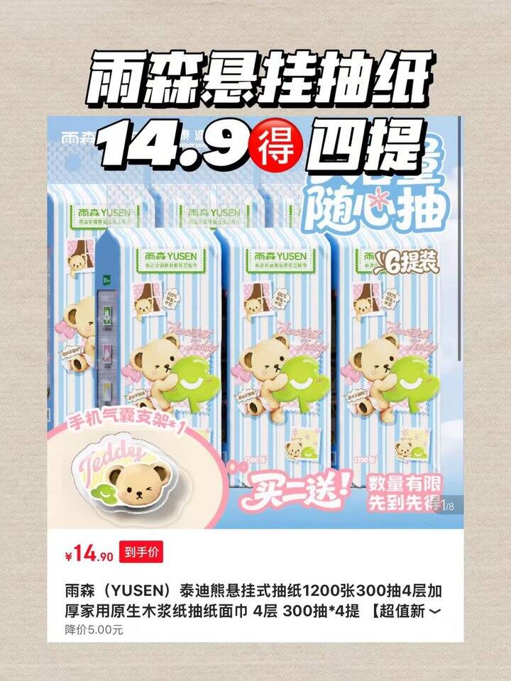 雨森联名泰迪珍藏悬挂抽纸!💰3+
