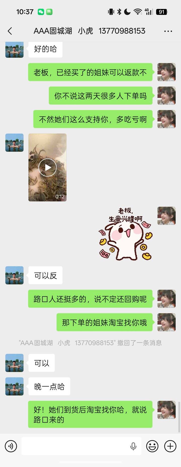 老板说很多路口姐妹过去买!以及我的螃蟹明天收到,不急买的姐妹可以等我明天拍照给你们看看再下单。