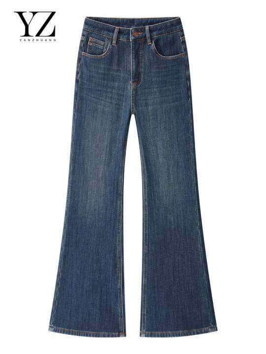言装2025秋冬新品青铜蓝加绒【筒叭裤】四面弹牛仔裤女百搭显瘦