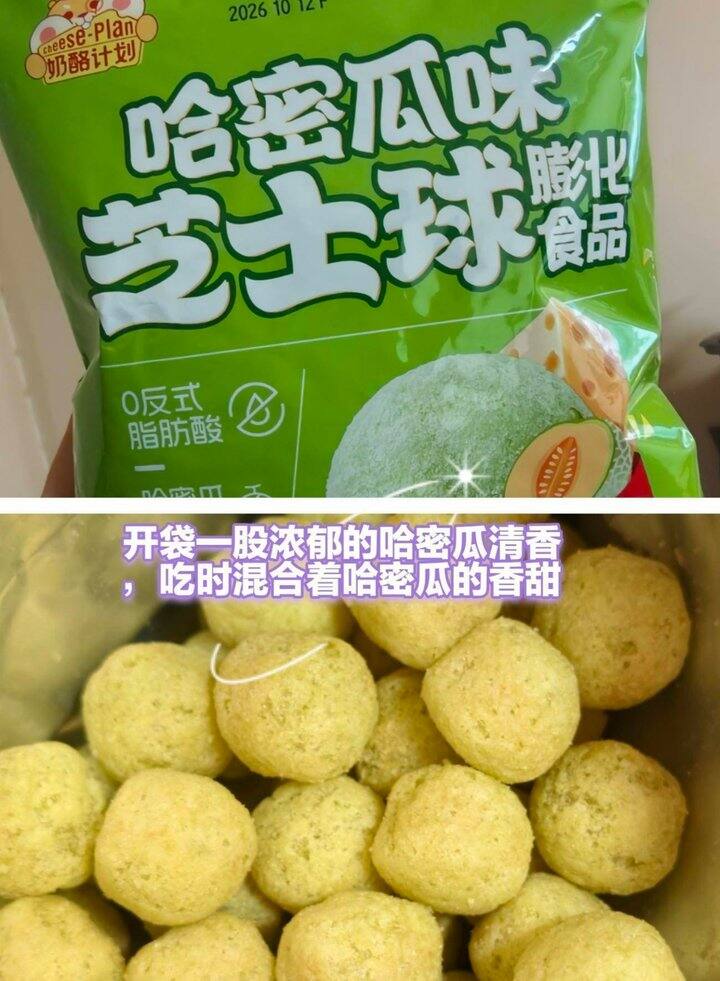 好吃的芝士球强势来袭三种口味任你选择~玉米味 哈密瓜味 黄瓜味(最喜欢哈密瓜味,很浓郁的哈密瓜香)~