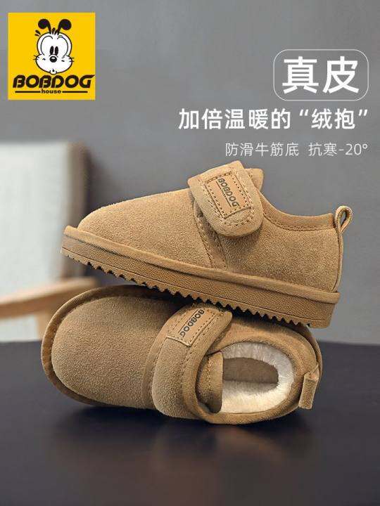 巴布豆儿童大棉鞋真皮加绒保暖男童短靴子冬季新款女宝宝雪地棉鞋