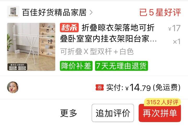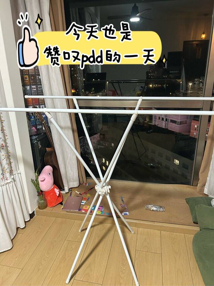 这个晾衣架前两天在秒杀刷到买了(然后还apple pay减了两块 所以才十二块多!伟大的pdd!)