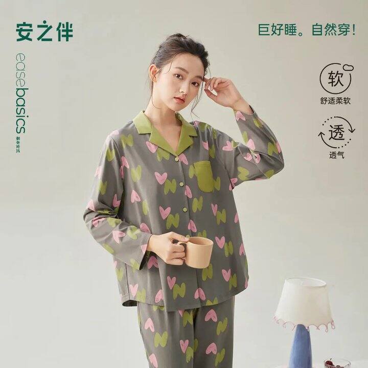 ❶ 睡衣女纯棉长裤家居服简约开衫,64.5