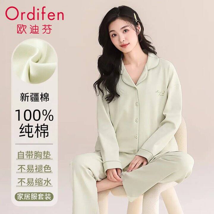 ❷ 睡衣女100%纯棉10A抑菌长袖家居服,59.95