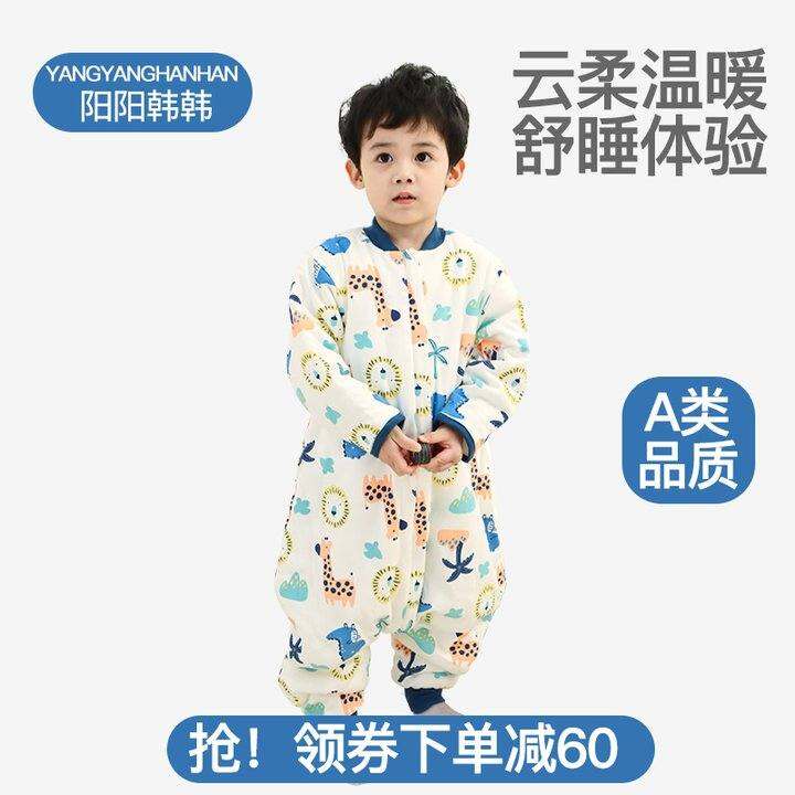 婴儿睡袋秋冬夹棉宝宝加厚防踢被新生儿连体多功能长袖拉链式睡衣